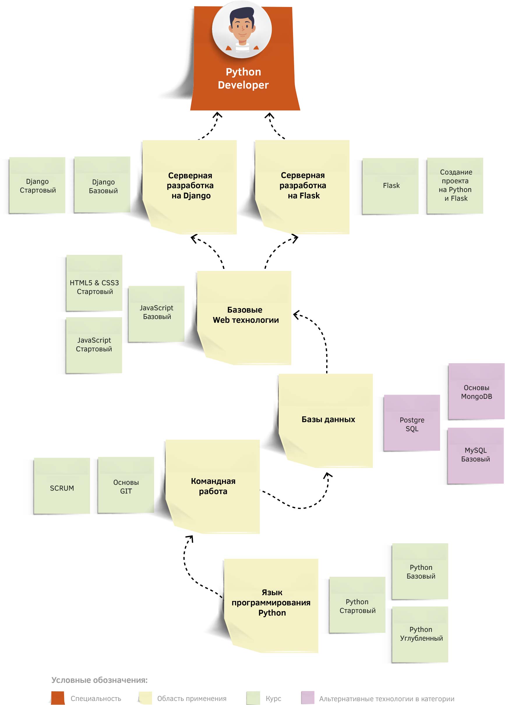 Поскольку наиболее популярным направлением Python-разработки является веб-разработка, разберем именно путь Python веб-программиста.